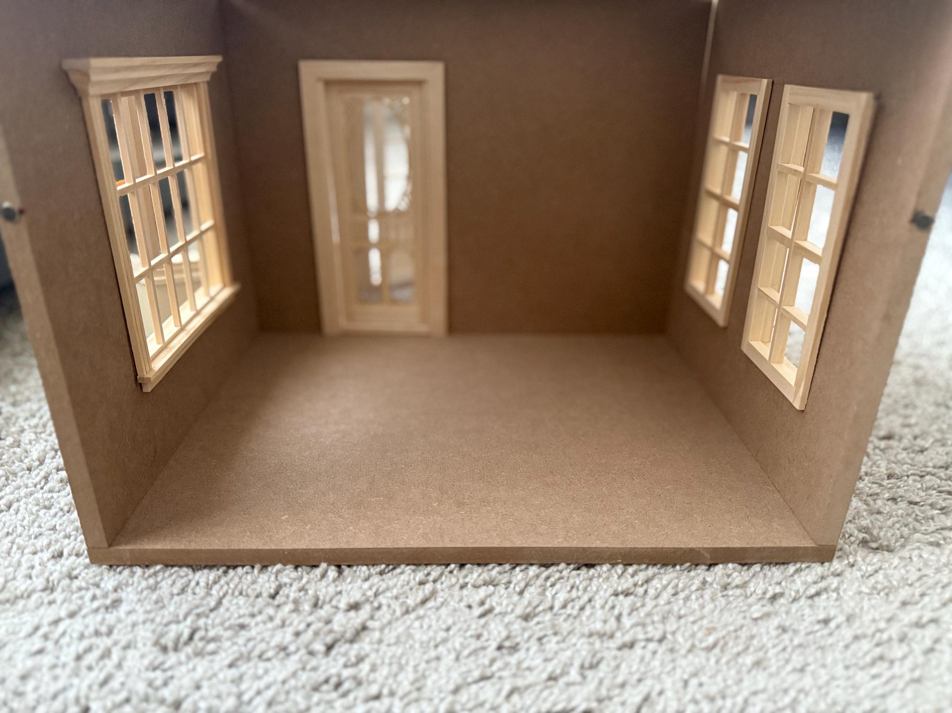 This is a Custom Order. The finished photo shows you one I completed for a customer and this listing includes extra door and windows and your choice of paint colors and wallpaper.